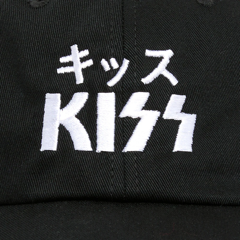 Die Rock and Roll All Nite Dad Hat verfügt über das KISS-Logo und den Schriftzug „Dressed To Kill” auf der Rückseite einer schwarzen Kappe.